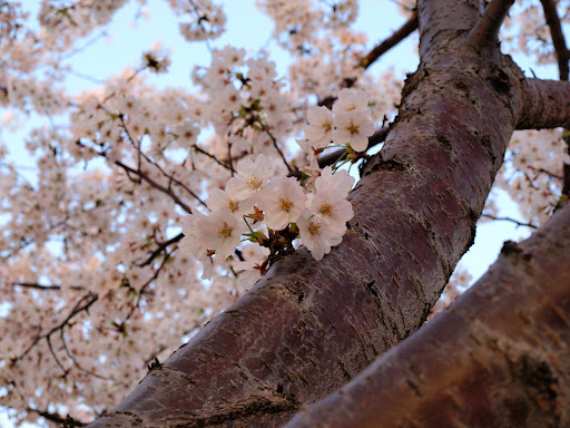 櫻花從樹中長出來。